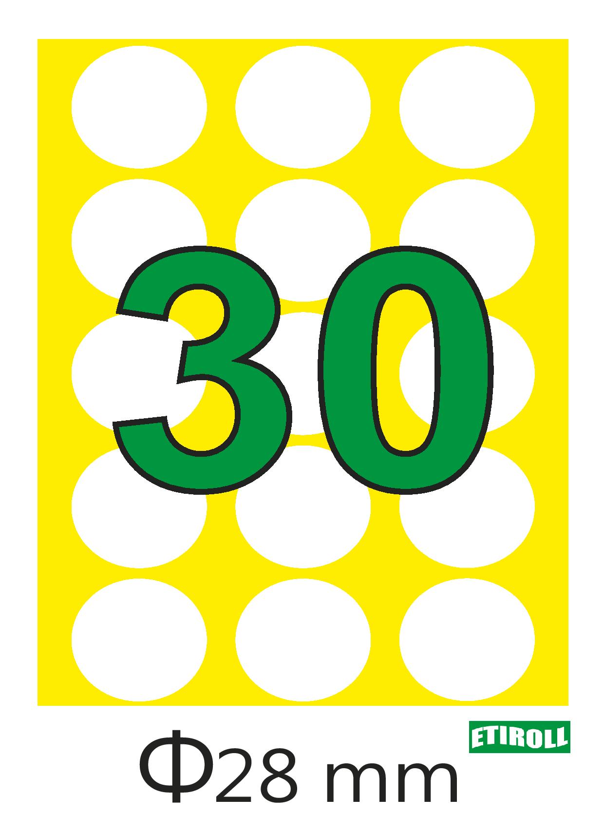 ΕΤΙΚΕΤΤΕΣ ΛΕΥΚΕΣ (Φ28mm) 40Φύλ. 15 ετικέτες/φύλλο Νο30