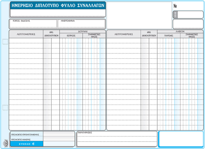 ΗΜΕΡΗΣΙΟ ΔΙΠΛΟΤΥΠΟ ΦΥΛΛΟ ΣΥΝΑΛΛΑΓΩΝ 21×29εκ. 50×2φ.
